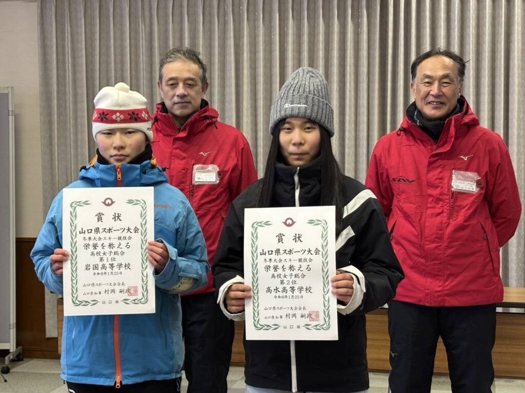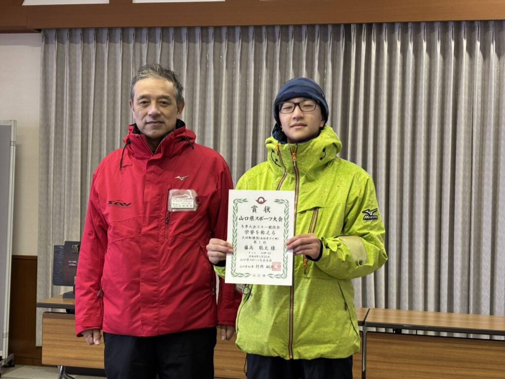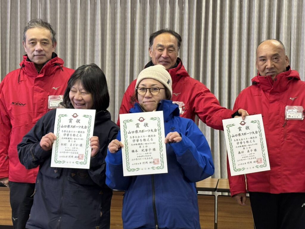 令和8年 山口県スポーツ大会冬季大会スキー競技会 及び 2026 会長杯スキー大会終了 令和8年1月25日に広島県民の森スキー場にて表記大会を開催いたしました。選手、役員の皆様、極寒の中お疲れさまでした。