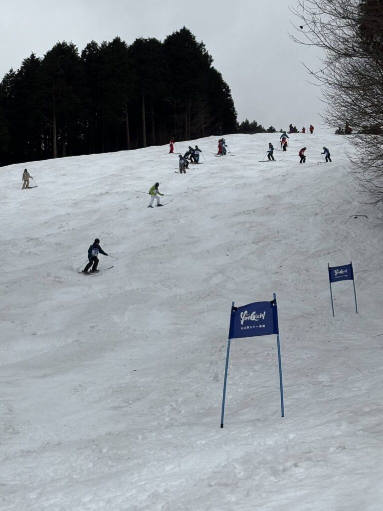 本日15日、山口県スキー技術選手権大会が「県民の森スキー場」で開催されました。